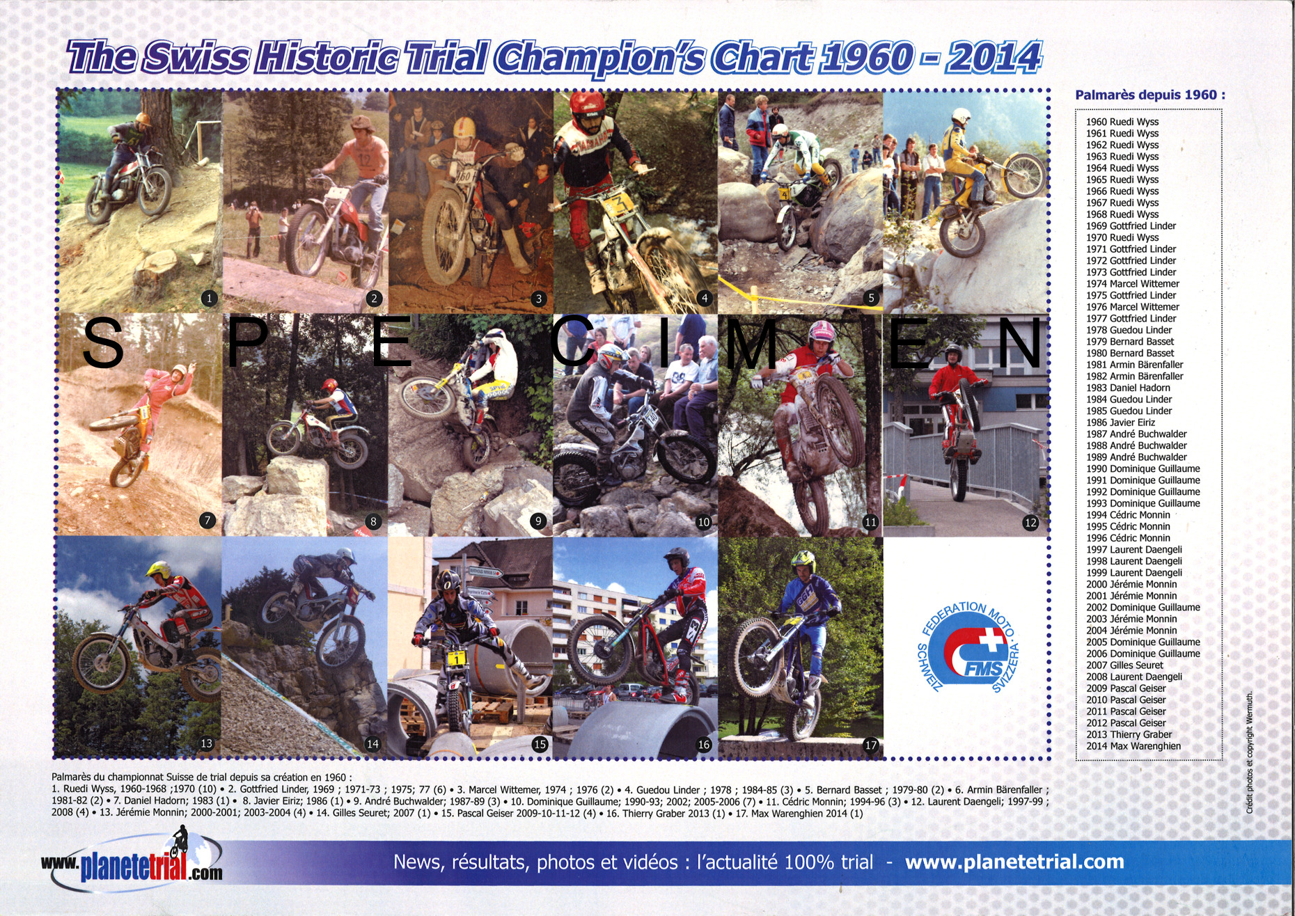 trial 1960 à 2014 (doc. de W. Wermuth) Les champions du monde de Trial vélo de 1986 à 2015. |